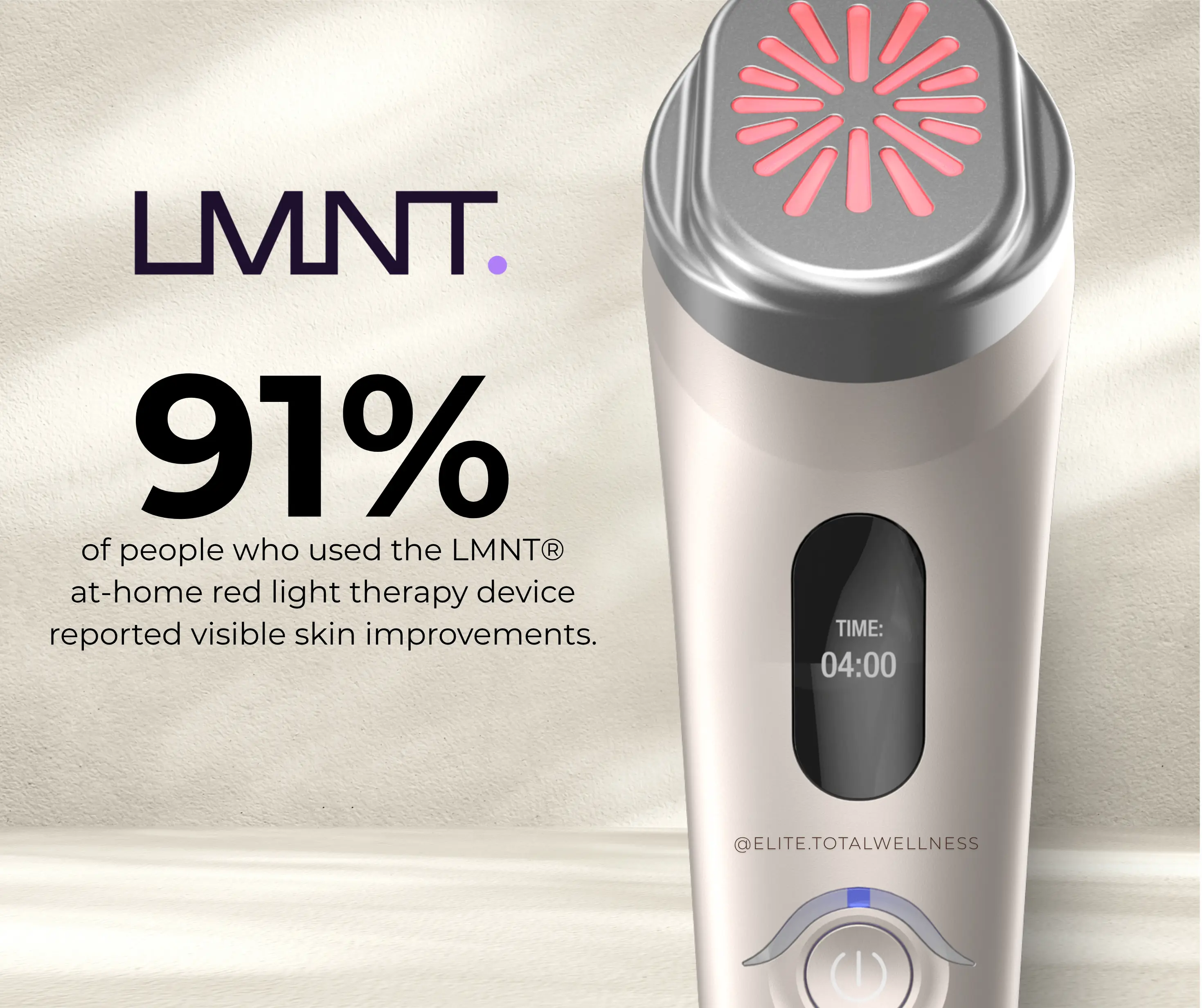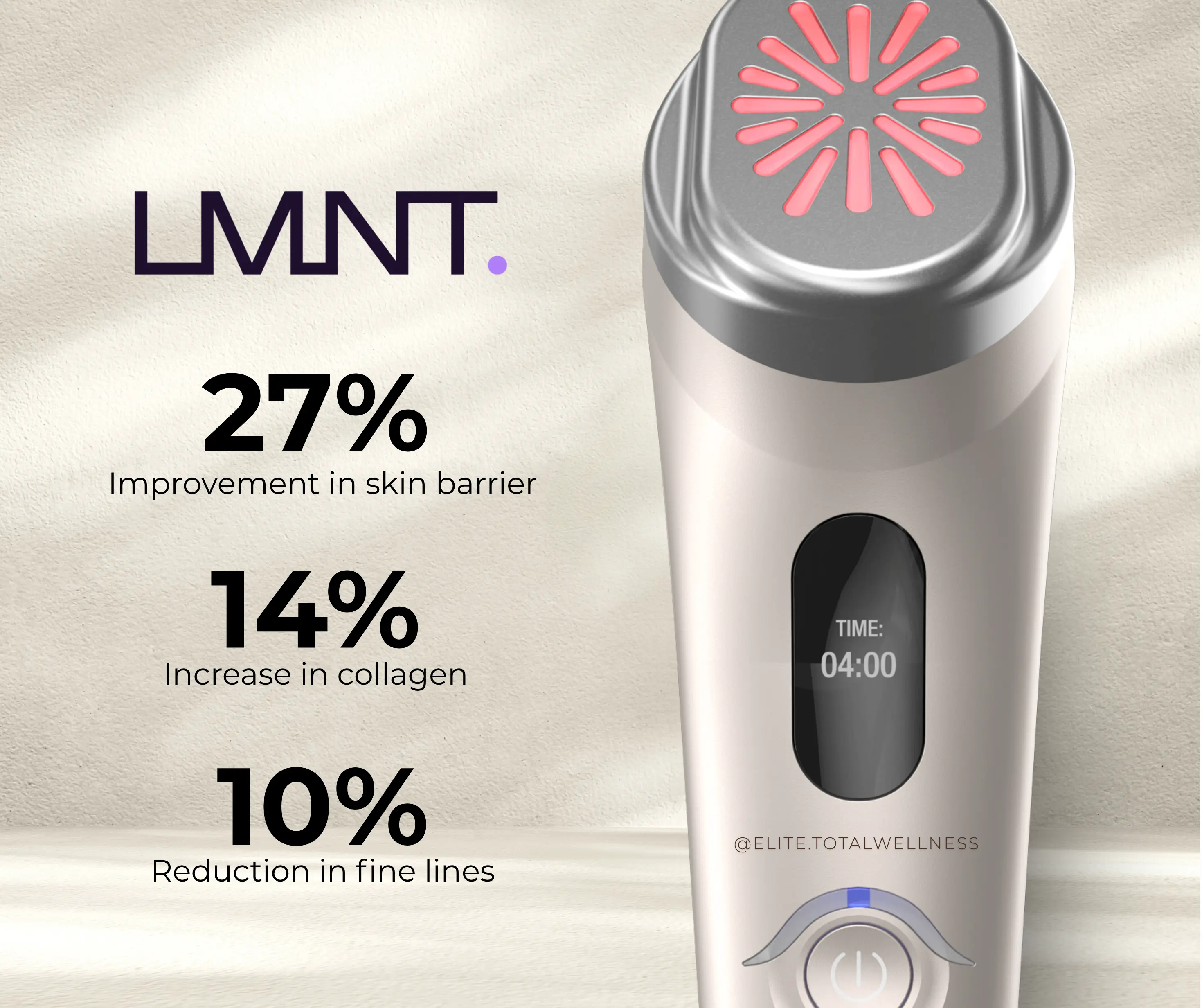 LMNT one is a unique, home use energy-based device that delivers red and infrared light therapy. Safe and comfortable to use, LMNT one integrates the power of the unique NIR 830nm wavelength and 633nm, utilizing coordinated micro pulses to achieve the optimal results for your skin. Dermal heating promotes skin elasticity and boosts collagen production. These clinically proven wavelengths deliver nourishing and healing energy into your skin, leaving your face with a fresh, glowing look that is radiant and ready to go.